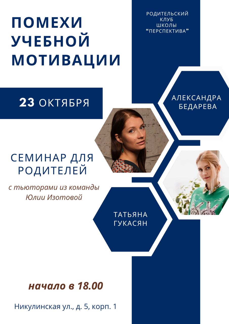 Дорогие друзья, приглашаем вас 23 октября в 18.00 на встречу родительского клуба «Помехи учебной мотивации».